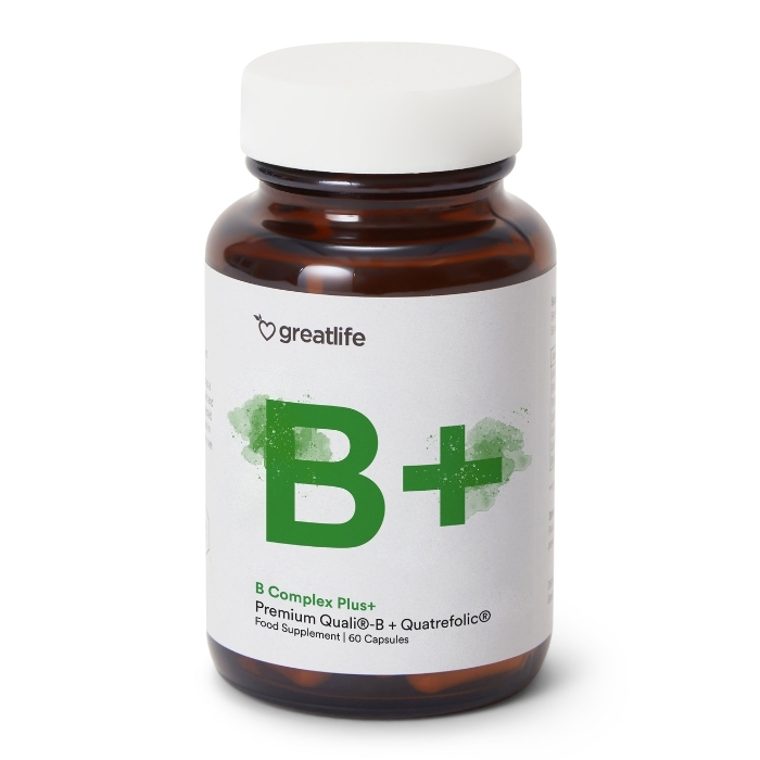 B Complex Plus+ da Greatlife é um complexo de vitaminas B de altíssima qualidade, desenvolvido para apoiar o metabolismo energético, a função do sistema nervoso e o equilíbrio mental. O B Complex Plus+ contém formas ativas e biodisponíveis de todas as vitaminas B, em combinação com mio-inositol, citicolina e betaína, que atuam juntas para a função cognitiva normal, gestão do stress e regulação hormonal. B Complex Plus+ é livre de aditivos desnecessários e substâncias artificiais.